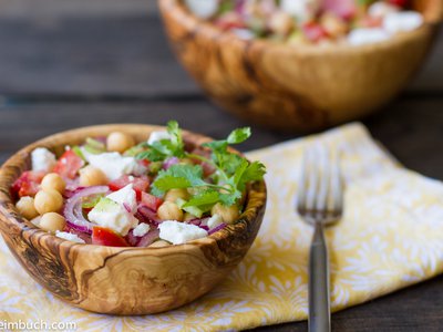 I’m always looking for great salad recipes that can be made up on a Sunday and eaten for lunches throughout the week. The three requirements for me are that it has to be easy to make, healthy, and improve in flavor as the days go by. This salad fills all those requirements. From start to finish, this salad doesn’t take more than about 20 minutes to make. You can put it in individual containers for grab-n-go lunches that will last all week long. And best of all, you’re doing your body a favor by eating this, thanks to the protein in the chickpeas and the healthy fats in the olive oil.