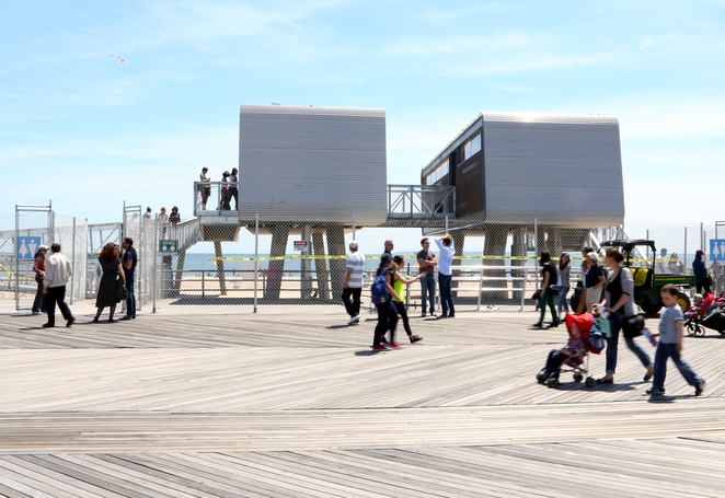 Designed and built at a breakneck pace, prefab comfort stations by Garrison Architects opened this weekend in time for Memorial Day. The restrooms, lifeguard stations and offices were designed to replace structures washed away by Hurricane Sandy in October.